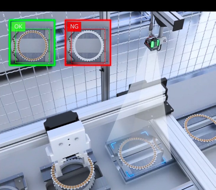 IV 시리즈의 학습 기능을 사용하면, 정상품의 색감 변화 범위를 간단하게 등록하여 허용치로 설정할 수 있습니다. 따라서 생산 로트가 바뀌어 오일로 인한 색감 변화가 발생하더라도, 이를 불량으로 오인하지 않고 마찰면의 유무만을 정확하게 판별할 수 있습니다. 이를 통해 작업자 실수로 인한 조립 불량을 안정적으로 방지할 수 있습니다.