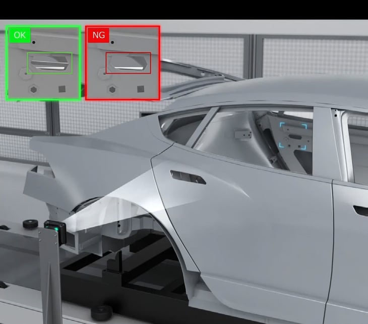 AI 탑재 스마트 비전 IV 시리즈를 사용하면, 차체 내부에 부품이 떨어져 있는지 여부를 자동으로 검사할 수 있습니다. 이를 통해 실러 도포 불량을 방지하고, 로봇과의 충돌 및 노즐 파손 리스크를 원천적으로 차단합니다.