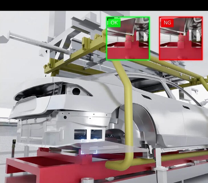 장거리·광시야를 지원하는 AI 탑재 스마트 비전 IV 시리즈는 넓은 시야로 차체의 전체적인 자세를 한 번에 검사할 수 있습니다. 따라서 차종이 추가/변경되어도 센서를 물리적으로 재설치할 필요 없이, 차체의 정상 안착 유무와 기울어짐을 안정적으로 검출할 수 있습니다.