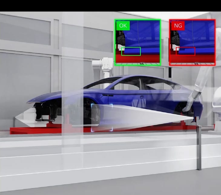 AI 탑재 스마트 비전 IV 시리즈는 내치핑 도장의 도포 유무와 위치를 정확하게 검사할 수 있습니다. 이를 통해 도포 누락이나 위치 불량을 확실하게 검출하여, 필수 사양이 적용되지 않은 차량이 유출되는 것을 원천적으로 방지하고 최종 품질을 확보할 수 있습니다.