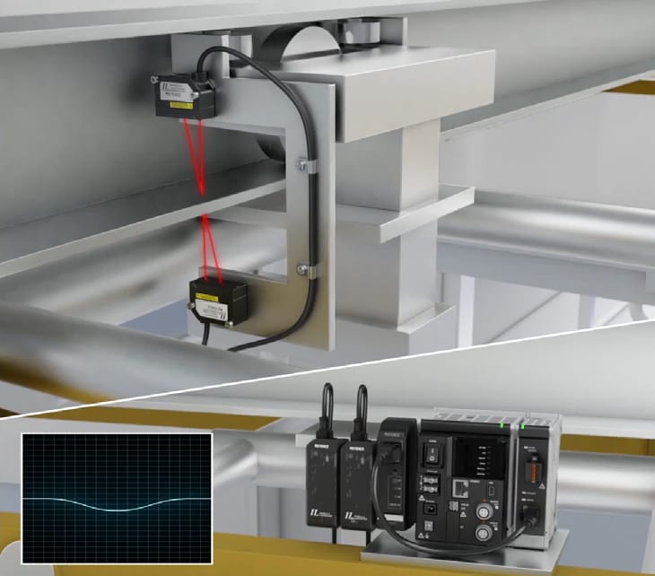 CMOS 레이저식 판별 센서 IL 시리즈를 사용하면 트롤리 전체 둘레의 두께를 비접촉으로 정밀하게 측정할 수 있습니다. 이를 통해 마모량을 정량적으로 관리하여 정확한 유지보수 시점을 예측할 수 있으며, 측정에 소요되는 공수를 획기적으로 절감하여 생산성을 높일 수 있습니다.