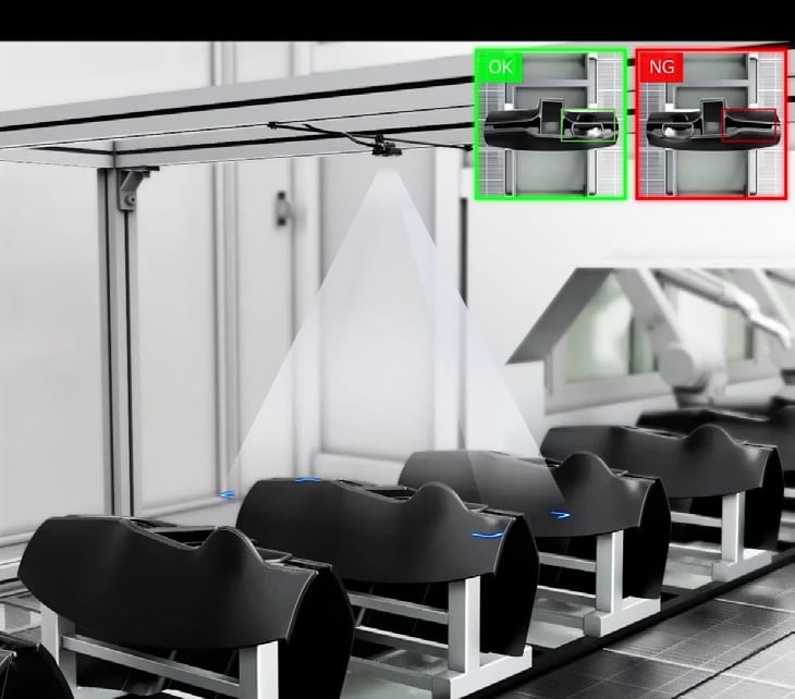 AI 탑재 스마트 비전 IV 시리즈는 넓은 시야로 대상물의 위치가 다소 틀어져도 L/R 부품의 형상 차이를 정확하게 판별할 수 있습니다. 따라서 잘못된 부품이 도장 공정으로 넘어가는 것을 확실하게 방지하여, 도장 불량 및 리콜 리스크를 원천적으로 차단할 수 있습니다.