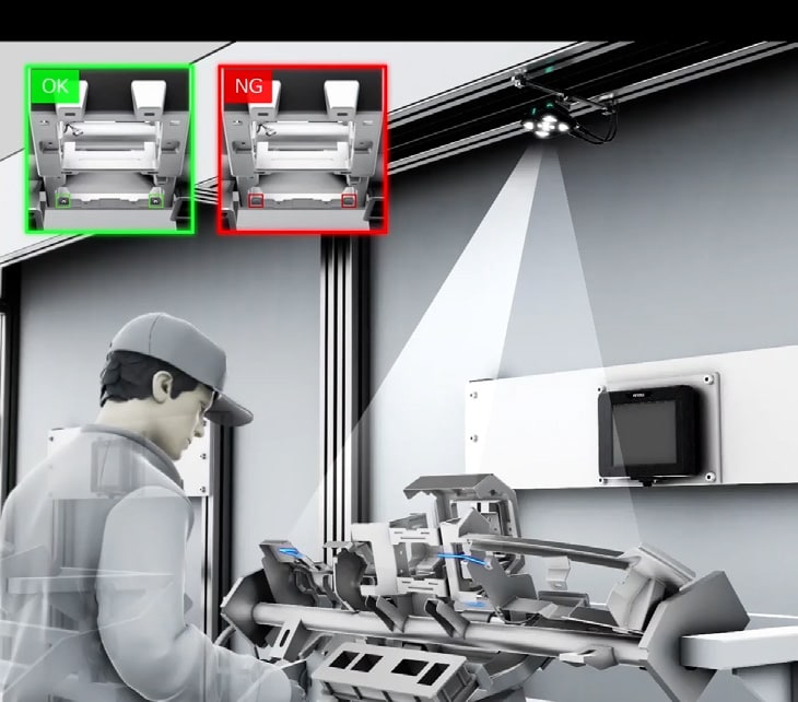 AI 탑재 스마트 비전 IV 시리즈는 고성능 조명과 독자적인 알고리즘으로 외란광의 영향을 억제하고 작은 부품도 안정적으로 검출할 수 있습니다. 따라서 조립 누락/실수를 확실하게 방지하여 품질 향상에 기여할 수 있습니다.