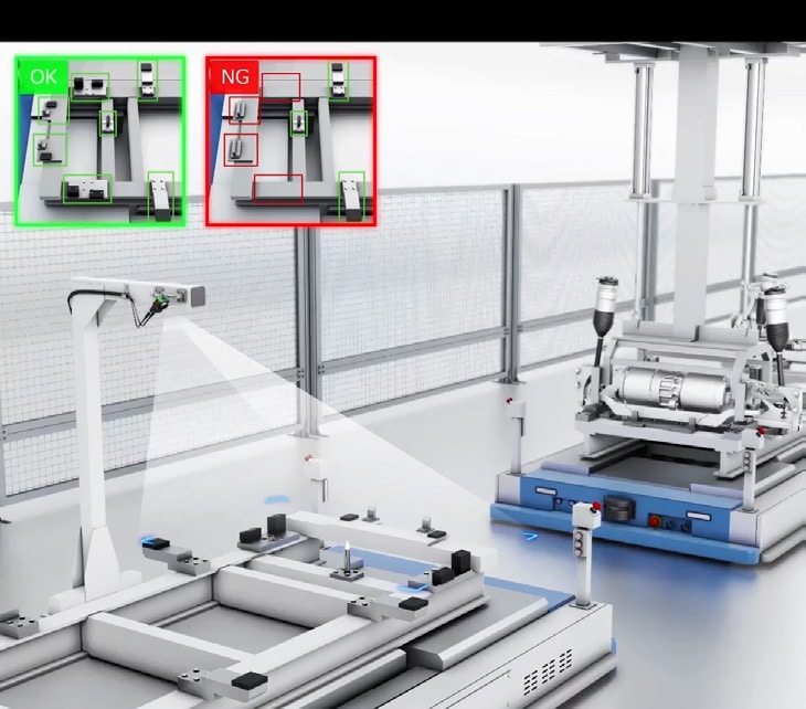 이 공정은 생산 지시 정보에 따라 작업자가 수작업으로 부품을 조립합니다. 하지만, 유사한 형태의 다른 품종을 잘못 선택하거나, 구멍의 위치(피치)가 맞지 않거나, 다른 방향으로 조립하는 실수가 발생할 수 있습니다.