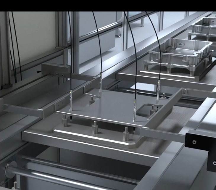 정밀한 조립 공정은 대상 물체 팔레트의 높이를 기준으로 설정되므로, 라인에 투입되는 팔레트의 높이와 기울기를 정확하게 측정해야 합니다. 특히 기울기를 확인하기 위해서는 여러 지점에 센서를 설치하여 높이 편차를 측정해야 합니다.