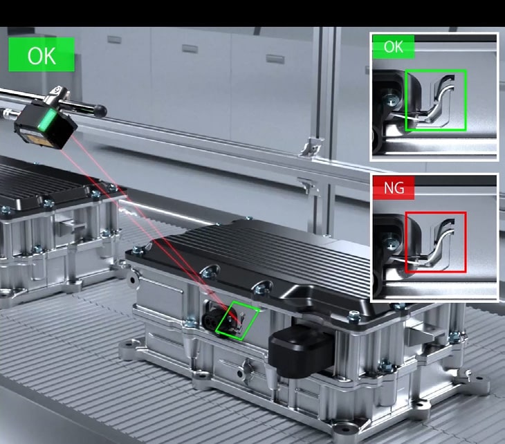 화상 탑재 레이저 변위 센서 IX 시리즈는 케이블의 높이를 직접 측정하여 장착 상태를 판별하므로, 케이블의 색상이나 표면 상태에 영향을 받지 않고 안정적인 검사를 실현할 수 있습니다.