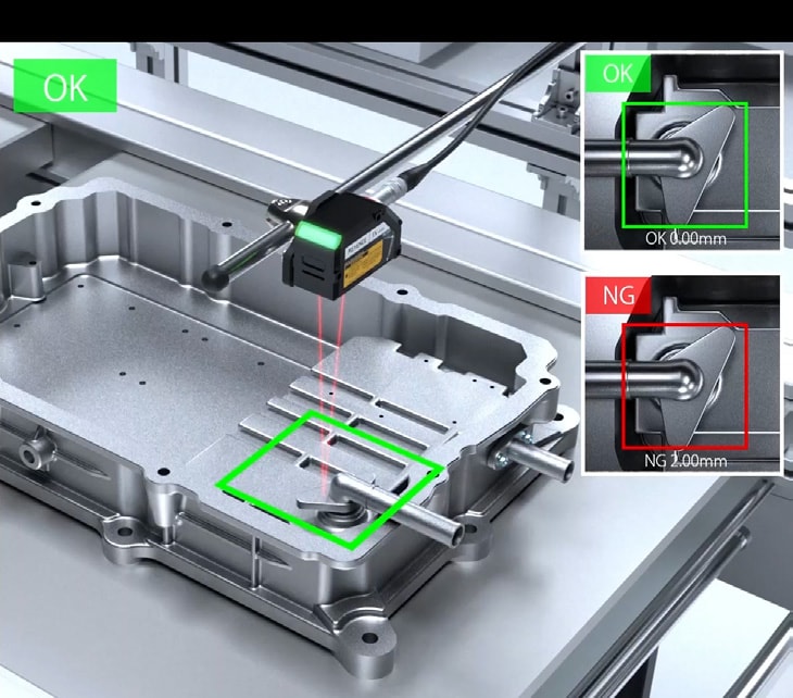 화상 탑재 레이저 변위 센서 IX 시리즈는 파이프와 기준면의 높이를 동시에 측정하여 단차를 연산합니다. 기존에는 기준면과 측정 지점을 각각 측정하기 위해 2대의 센서가 필요했지만, 화상 탑재 레이저 변위 센서 IX 시리즈는 단 1대의 센서로 이 모든 검사를 완료할 수 있습니다.