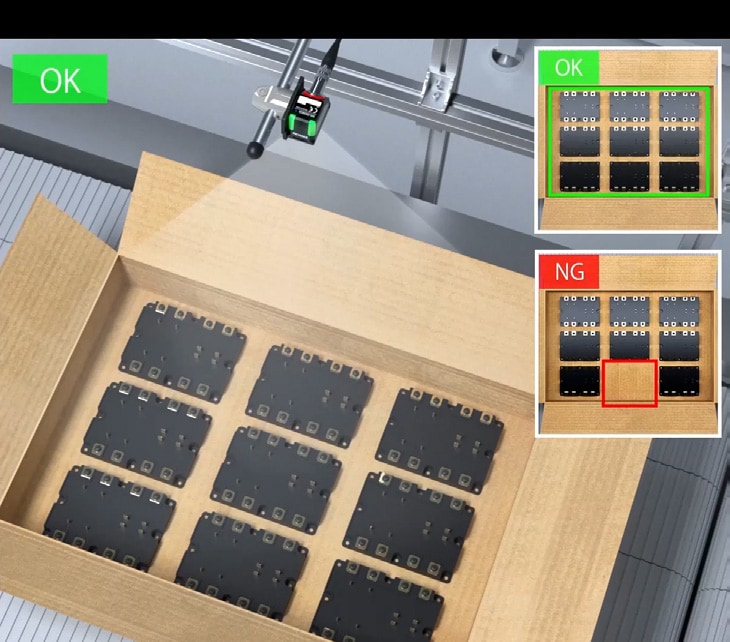 AI 탑재 스마트 비전 IV 시리즈는 장거리에서도 넓은 시야를 선명하게 촬영할 수 있어, 로봇이나 작업자의 동선을 방해하지 않으면서도 포장 상태를 정확하고 안정적으로 검사할 수 있습니다.