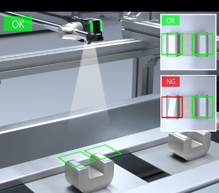AI 탑재 스마트 비전 IV 시리즈에는 '위치 어긋남' 검사와 같이 특정 목적에 최적화된 전용 검사 툴이 내장되어 있습니다. 이러한 전용 툴 덕분에, 복잡한 프로그래밍 없이 몇 번의 클릭만으로 누구나 손쉽게 안정적인 검사 설정을 완료할 수 있습니다.