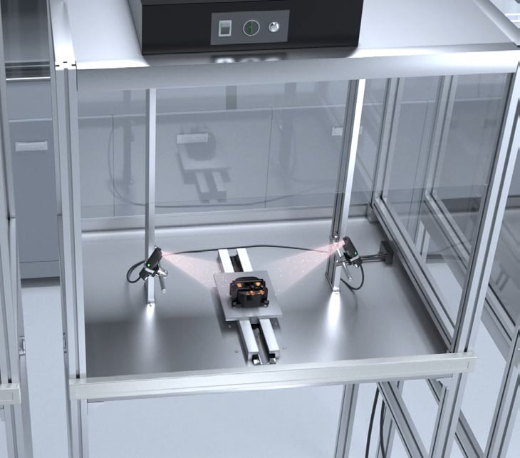 포장하기 전, 제품에 묻은 이물질을 제거하기 위해 에어 블로우 공정을 거칩니다. 하지만 대상 물체가 정전기를 띠고 있으면, 일반적인 에어 블로우만으로는 이물질이 잘 떨어지지 않는 경우가 있습니다. 이때 공기에 이온을 포함시킨 '제전 에어'를 사용하면, 정전기를 중화시키면서 이물질을 불어내므로 에어 블로우의 효율을 크게 향상시킬 수 있습니다.