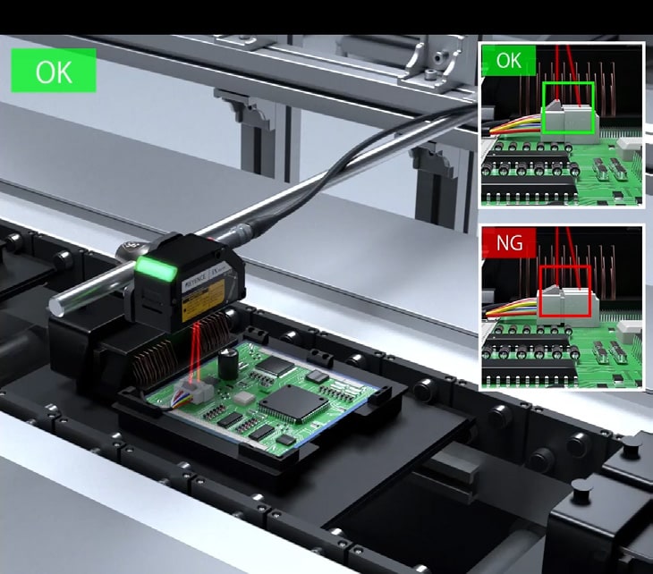 화상 탑재 레이저 변위 센서 IX 시리즈를 사용하면, 센서 1대로 커넥터의 높이 차이(단차)를 직접 측정할 수 있으므로, 이러한 검사를 자동으로 수행할 수 있습니다.