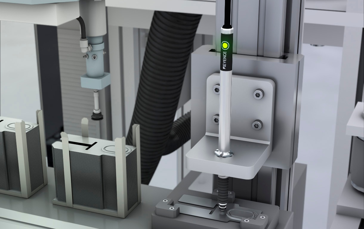 고정도 디지털 접촉식 센서 GT2 시리즈는 0.001mm의 초고정밀도로 안정적인 측정이 가능하여, 얇은 어댑터가 겹쳐졌을 때의 미세한 두께 차이를 확실하게 검출합니다. 또한, 어댑터의 색상에 영향을 받지 않고 설정도 간단하며, 2억 회의 긴 수명을 보장하여 교체 없이 장기간 사용할 수 있습니다.