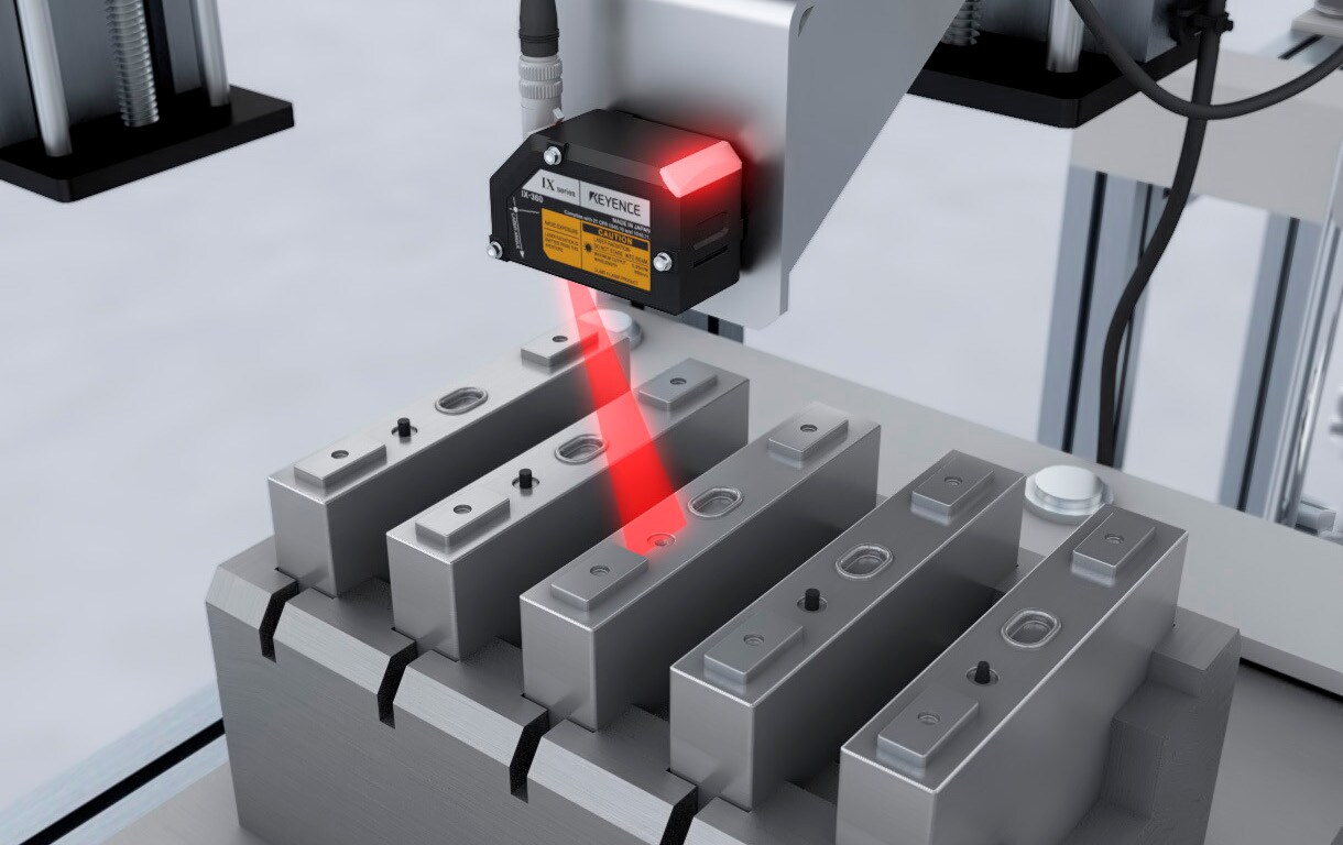 화상 탑재 레이저 변위 센서 IX 시리즈는 셀의 위치가 어긋나도 안정적인 검사를 할 수 있는 위치 보정 기능이 탑재되어 있으므로 여러 검사 조건을 동시에 충족할 수 있습니다.