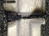 전자 부품이 점점 소형화되면서 밀봉 수지 부분의 두께가 얇아지고 있습니다. 기본 파장 레이저는 밀봉 수지 부분을 투과하여 내부에 손상을 입힐 수 있습니다. UV 레이저는 높은 흡수율로 내부로 투과되는 것을 억제할 수 있습니다.
