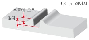 강한 파워로 인쇄하면 열의 영향을 받아 핀 홀이 발생할 가능성이 있습니다. 파장 9.3 μm의 단파장 레이저를 사용하면 더욱 손상이 적은 선명한 인쇄를 할 수 있습니다.