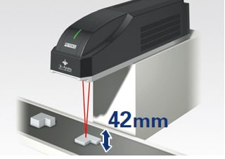 3D 레이저 마킹기는 42 mm 폭에서 초점 거리를 임의로 설정할 수 있습니다. 헤드의 상하 기구나 품종별 대상 물체용 높이 조정 지그에 의한 초점 조정이 필요 없습니다. 설치 비용의 대폭 절감과 설정 변경 시간 단축에 기여합니다.
