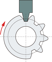 이에 대해 성형법은 기어의 홈과 같은 형상의 절삭 공구를 이용하여 프레이즈 머신으로 가공하는 방법입니다. 전용 가공기를 사용하지 않아도 기어를 양산할 수 있습니다.