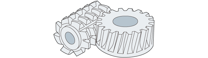 한 마디로 기어라 해도 그 형상은 다양하며 가공 시 전용 가공 기계가 필요합니다. 크게 「스퍼 기어」와 「베벨 기어」로 나뉘며, 각각을 가공하기 위한 전용 기어 절삭기로는 「스퍼 기어 절삭기」와 「베벨 기어 절삭기」가 있습니다.