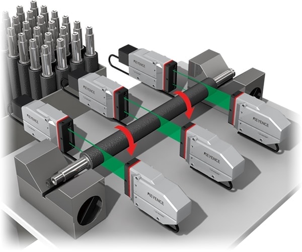 LS 시리즈는 대상 물체의 재질 및 표면 광택에 따른 측정값 편차가 없어 롤 측정 용도 관련 채택 실적이 매우 많습니다. 롤의 양쪽 끝을 측정하여 편심뿐만 아니라 기울기도 측정할 수 있습니다.