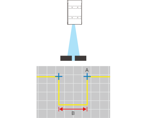 라인 레이저를 조사하여 취득한 형상의 폭을 단차로 측정합니다.