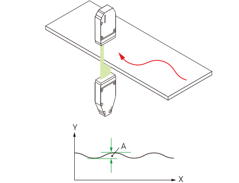 센서 헤드 사이에 대상 물체를 두고 에지 위치의 변동을 측정합니다.