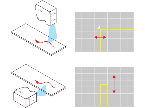 라인 레이저를 조사하여 취득한 형상을 통해 에지 위치의 변동을 측정합니다.