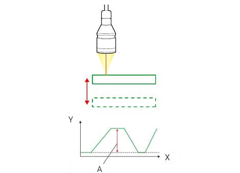 대상 물체가 좌우로 어긋나도 위치 보정 기능을 이용하여 올바른 스트로크 양을 측정할 수 있습니다.