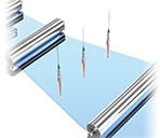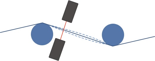 광축이 어긋난 경우에도 그 영향을 최소한으로 억제할 수 있도록, 텐션이 안정적이며 롤러 간격이 좁은 부분을 선택하여 롤러 근처에 설치합니다. 이 방법을 통해 대상물의 휨과 진동이 적은 상태에서 측정할 수 있습니다.