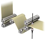 대상 물체에 최대한 텐션을 부여합니다. 텐션이 느슨하면 대상 물체가 롤에 밀착되지 않으므로 수 µm~수십 µm의 들뜸이 발생합니다. 대상 물체의 인장 강도를 고려하면서 50 N 이상의 텐션을 적용하고 측정하는 것을 권장합니다. 최대한 텐션이 안정적이며 롤러 간격이 좁은 부분을 찾아 대상 물체가 롤러 위에 위치한 상태에서 측정해 주십시오.