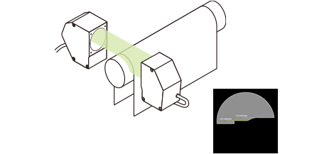 반사형 2D 레이저 변위 센서나 투과형 2D 마이크로미터는 베이스면과 대상 물체를 동시에 측정하고 이를 통해 취득한 형상에서 단차를 측정 가능.