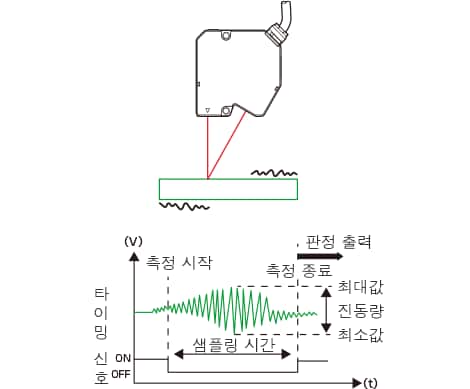 따라서 면 진동 측정 시에는 표면 거칠기의 영향을 억제할 수 있는 와이드 스폿 타입의 레이저 변위 센서가 자주 사용됩니다.