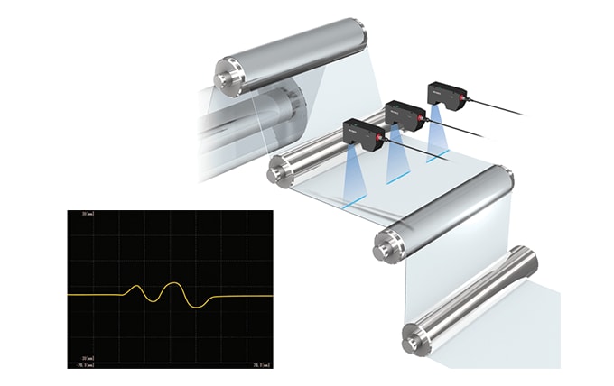 초고속·고정도 마이크로미터 「LS-9000 시리즈」를 도입하면 라인을 정지시키지 않아도 인라인에서 비접촉으로 롤의 단차 측정, 시트의 두께 관리, 실시간 피드백 제어가 가능합니다.