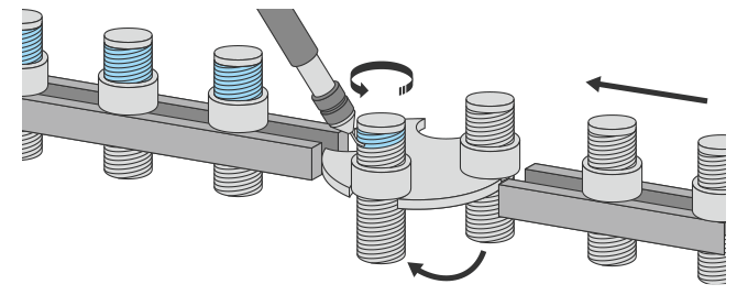 나사의 풀림 방지 접착제는 솔로 바르는 경우도 있지만, 디스펜서를 이용하여 대량의 나사에 정량의 액제를 안정적이고 효율적으로 도포할 수 있습니다. 또한, 솔에서 빠진 털이 나사 홈에 부착되는 등의 불량도 발생하지 않습니다.