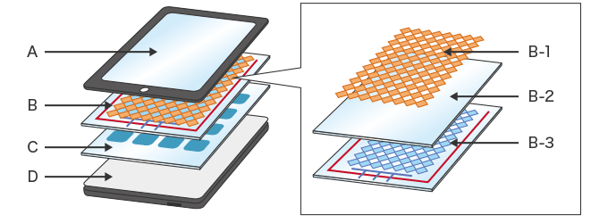 스마트폰이나 태블릿과 같은 디바이스의 가장 큰 특징은 고화질 디스플레이와 직관적인 조작을 실현하는 「터치 패널」입니다. 터치 패널 제조 시에는 공정의 여러 과정에서 기능의 부여나 표면 처리를 목적으로 한 도포가 이용되고 있습니다.