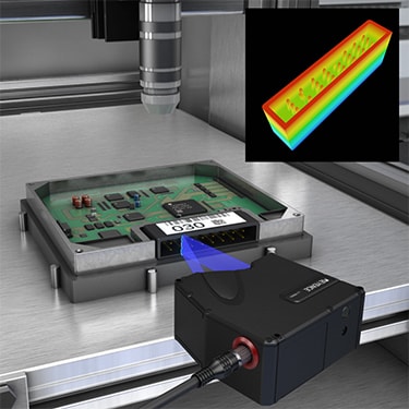 용접부에 분체를 도포한 후의 높이를 측정합니다. LJ-X8000 시리즈는 초고속으로 3D 검사를 할 수 있기 때문에 인라인에서 전수 검사가 가능합니다.