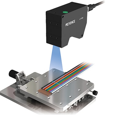 2차원 레이저 변위 센서로 플랫 케이블의 단면 형상과 폭을 측정합니다. 대상 물체의 재질에 영향을 받지 않아 안정적으로 계측할 수 있습니다. 도선부의 배열 상태가 올바른지 폭은 적절한지 등을 측정합니다.