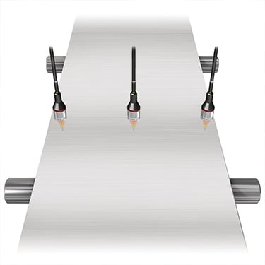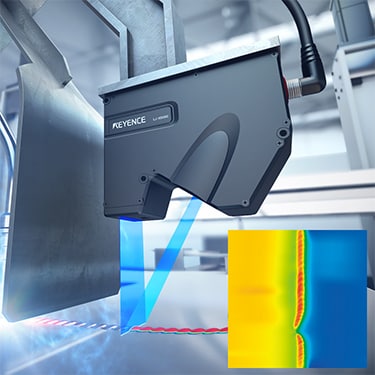 소재에 제한이 없는 ABLE 기능이 탑재된 레이저 변위 센서라면 열로 빨갛게 달궈진 금속이라도 폭과 형상을 측정할 수 있습니다. 설치 거리도 최대 1 m까지 떨어뜨릴 수 있습니다.