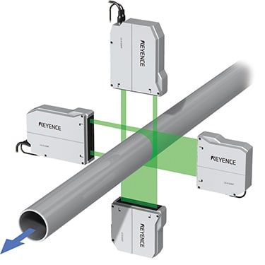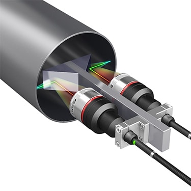 소형이면서 동축인 레이저 변위 센서는 미러나 프리즘을 이용하여 광축을 구부려 측정하는 것도 쉽기 때문에 비접촉 내경 계측을 실현했습니다.