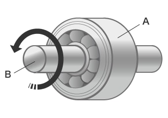 - 이 베어링은 볼이나 원통형 롤러로 축을 지지합니다. 볼을 사용한 것은 「볼 베어링」이라고 합니다. 또, 롤러를 사용한 것은 「롤러 베어링(원통 롤러 베어링)」 「니들 베어링(침상 롤러 베어링)」이라고 하며 부하 능력이 높고 볼 베어링과 비교하여 얇은 두께로 만들 수 있습니다.