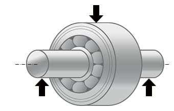 베어링에 가해지는 힘은「레이디얼 하중」「액시얼 하중」「모멘트 하중」으로 분류됩니다.