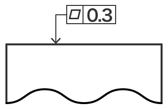 완벽하게 평평한 두 개의 평면 사이에 대상물을 끼웠다고 가정했을 때, 두 개의 평면 사이의 폭이 나타내는 값을 평면도입니다. 즉 대상 물체가 얼마나 평평한 면이어야 하는가에 대한 공차를 지정하고, 물체의 가장 튀어나온 부분과 가장 함몰된 부분이 상하로 분리된 두 평면 사이의 일정 거리에 있어야 한다는 것입니다.