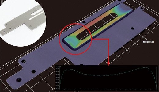 또한 정량적으로 측정한 형상 데이터를 얻을 수 있기 때문에 이를 활용하여 허용값(공차)의 수치로 휨을 관리하거나, 경향 분석을 진행할 수 있습니다.