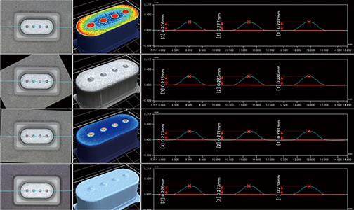그 외에도 과거의 3D 형상 데이터와의 비교, 거칠기 분포 등을 간단하게 분석할 수 있기 때문에, 장기간에 사용에 의한 금형 마모의 경향 분석, 결손 상태의 확인 등 다양한 용도로 활용할 수 있습니다.