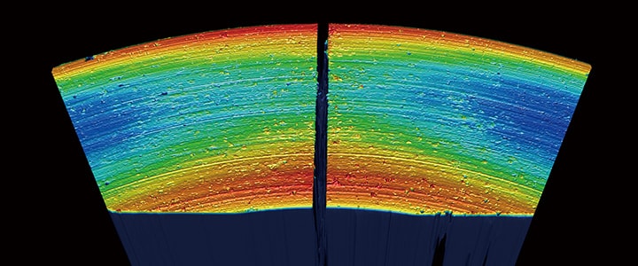 「VR 시리즈」를 사용하면 고속 3D 스캔을 통해 접촉 방식을 이용하여 대상 물체의 정확한 3D 형상을 순식간에 측정할 수 있습니다. 또한 마모면의 최고점이나 최저점은 물론, 체적·단면적·표면적과 단면적의 비율 등의 측정에 있어 존재했던 기존 측정기의 과제를 모두 해결할 수 있습니다.