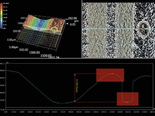 자동 면적 계측(C) 및 3D 형상·프로파일 측정(오른쪽 아래)을 간단한 조작으로 실현.