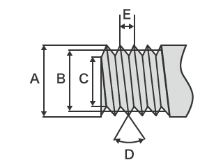 - E. 피치: 인접한 나사산의 피크 사이 거리.