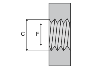 일반적으로 수나사의 길이를 「호칭 길이」라고 하며, 목 아래 길이(E)를 가리킵니다. 단, 나사의 종류 및 머리부의 형상에 따라서는 그 정의가 달라집니다. 예를 들어 접합 시에 머리부가 돌출되지 않는 접시 나사인 경우 전체 길이(F)가 호칭 길이가 됩니다.
