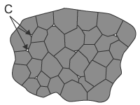 고체 분말의 표면은 원자·분자·이온이 결합되어 있지 않기 때문에 불안정한 상태입니다. 고체 분말을 가열하면 ‘목’이라는 결합부가 형성됩니다. 분말 입자의 표면에서 원자·분자·이온이 목으로 이동해 확산되며 목이 커지고, 표면적이 감소합니다. 소결의 초기, 중기, 후기에 걸쳐 목이 커지고 밀도가 상승하여 소결품이 완성됩니다.