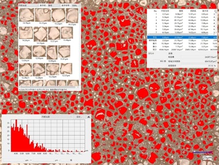 자동 면적 계측 기능으로 입도를 분석하면 분석이 정확해지므로 공정 수를 대폭 절감할 수 있습니다.