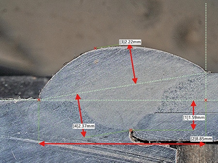 4K 디지털 마이크로스코프 「VHX 시리즈」를 이용한 겹치기 필렛 용접 등의 측정